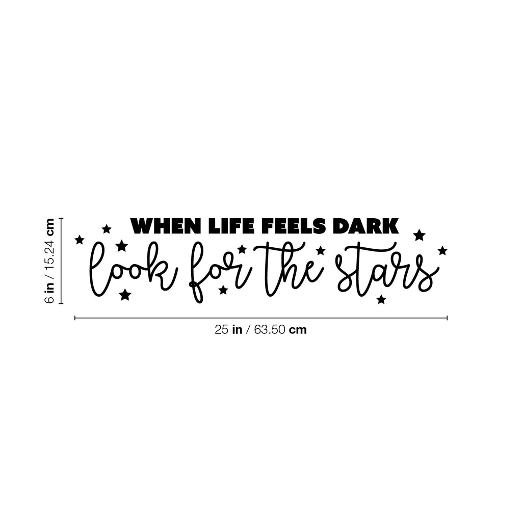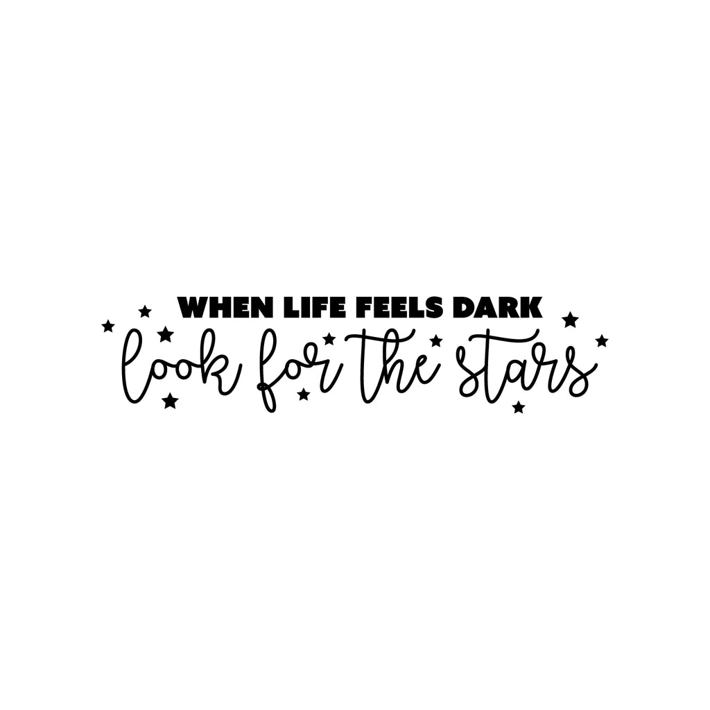 This awesome inspirational decal quote "When Life Feels Dark Look For The Stars"; is the perfect touch for your office or store. Use it for your boutique; living room; shop front or anywhere you want to bring some extra cute decoration. It's a vinyl sticker that is easy to put on any smooth and dry surface. Our modern designs don't just brighten up the room; but brighten up the day. Using top of the line vinyl across all of our production allows us to be the leaders in quality and design.