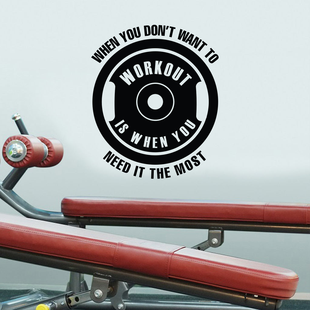 Vinyl Wall Art Decal - When You Don't Want To Workout - 20. Motivational Positive Healthy Lifestyle Cool Barbell Plate Design Shape Quote Sticker For Gym CrossFit Fitness Center Decor