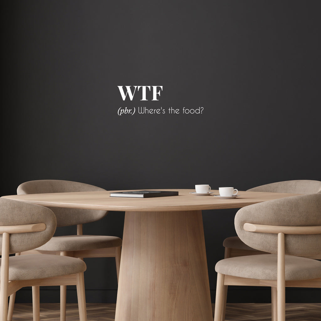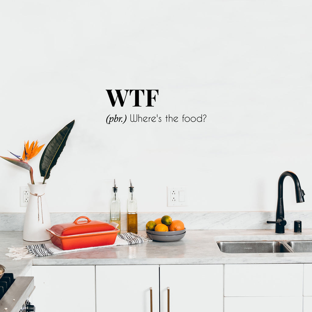 This awesome funny decal quote "Where's The Food"; is the perfect touch for your home. Use it for your dining room; restaurant; kitchen or anywhere you want to bring some extra decoration. It's a vinyl sticker that is easy to put on any smooth and dry surface. Our modern designs don't just brighten up the room; but brighten up the day. Using top of the line vinyl across all of our production allows us to be the leaders in quality and design.