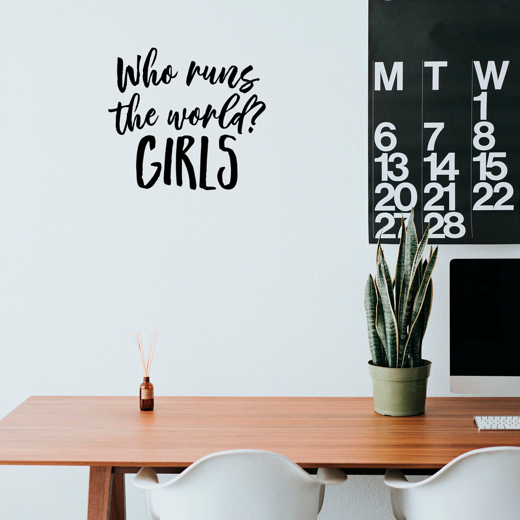 This "Who Runs The World? Girls" wall art decal is the perfect touch for your home. Use it for your bedroom; living room; or anywhere you want to bring some extra motivational decoration. It's a vinyl sticker that is easy to put on almost any smooth and dry surface. Our modern designs don't just brighten up the room; but brighten up the day. Using top of the line vinyl across all of our production allows us to be the leaders in quality and design.