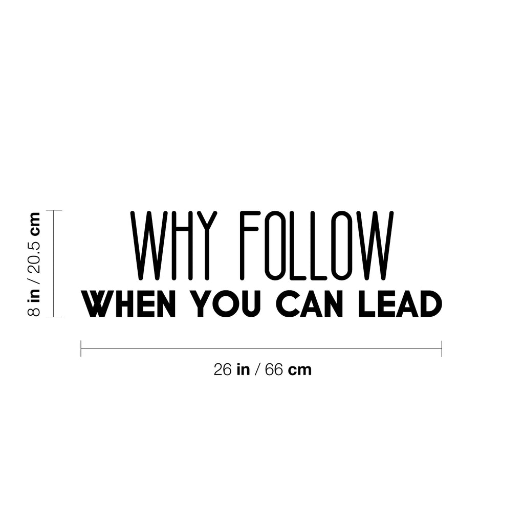This awesome positive inspiring decal quote "Why Follow When You Can Lead"; is the perfect touch for your home or office. Use it for your make up mirror; bathroom; business or anywhere you want to bring some extra positive decoration. It's a vinyl sticker that is easy to put on any smooth and dry surface. Our modern designs don't just brighten up the room; but brighten up the day. Using top of the line vinyl across all of our production allows us to be the leaders in quality and design.