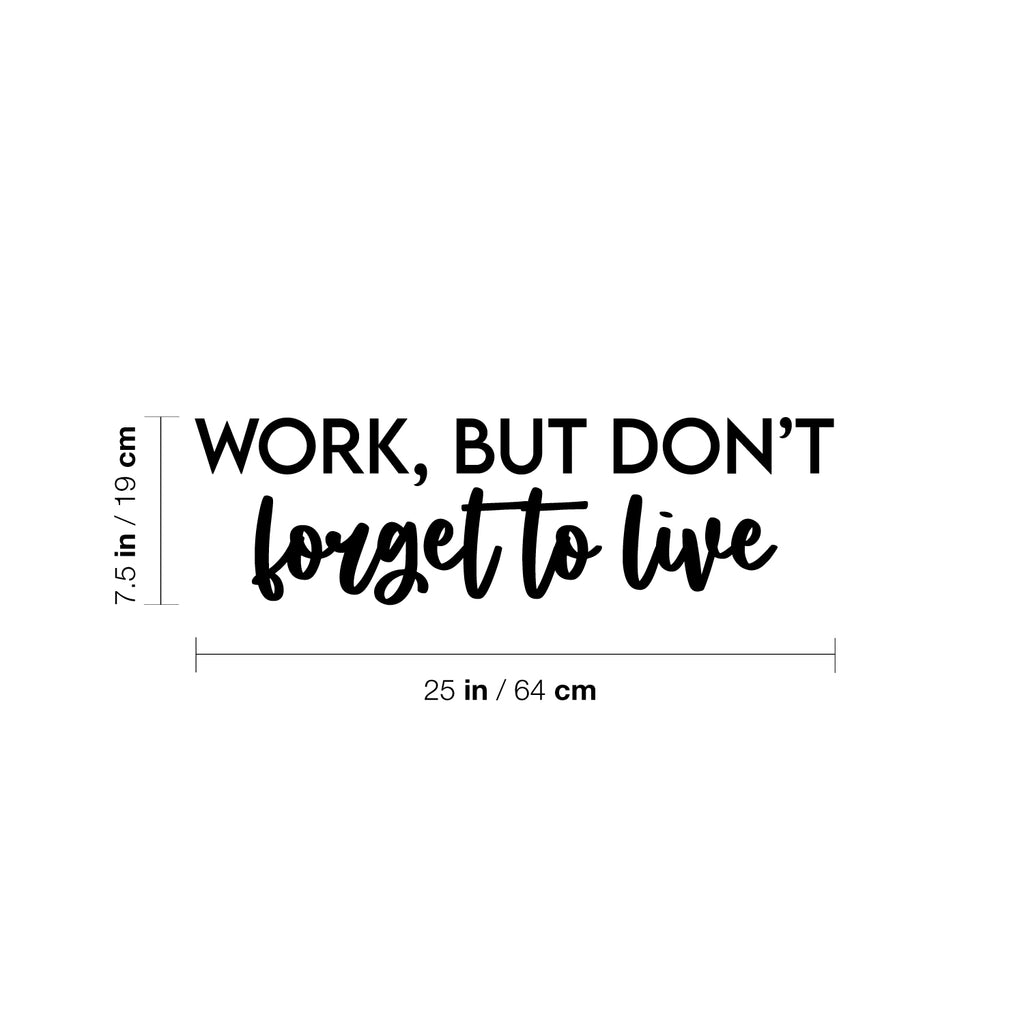 This awesome inspirational decal quote "Work But Don't Forget To Live"; is the perfect touch for your home or classroom. Use it for your home school; living room; office or anywhere you want to bring some extra decoration. It's a vinyl sticker that is easy to put on any smooth and dry surface. Our modern designs don't just brighten up the room; but brighten up the day. Using top of the line vinyl across all of our production allows us to be the leaders in quality and design.