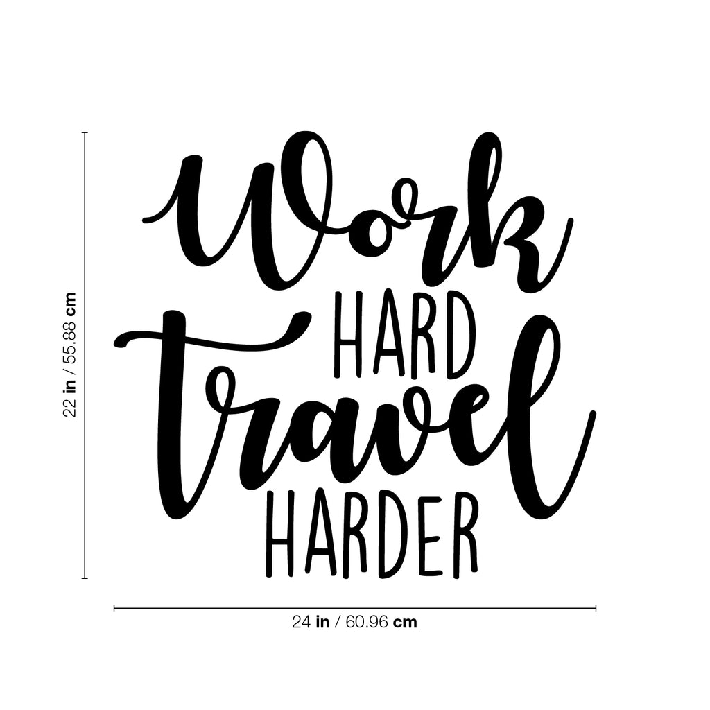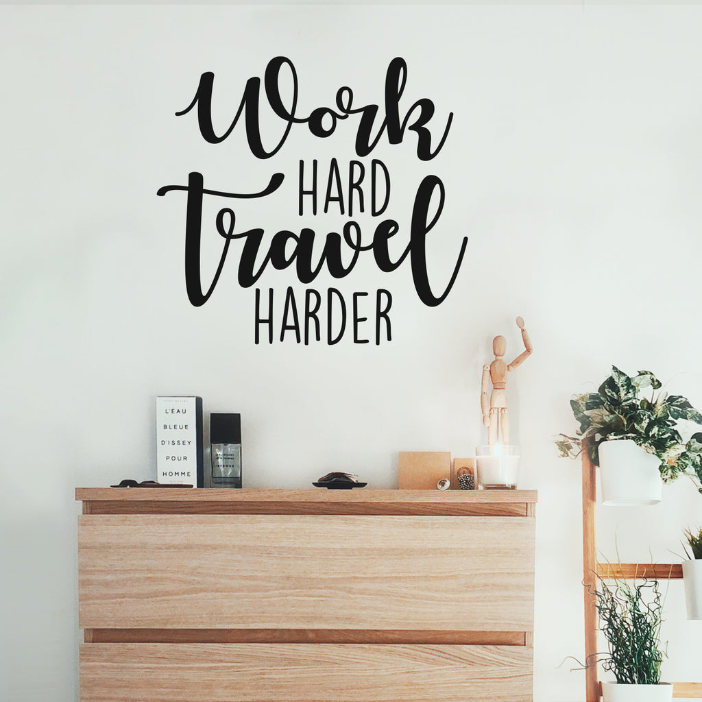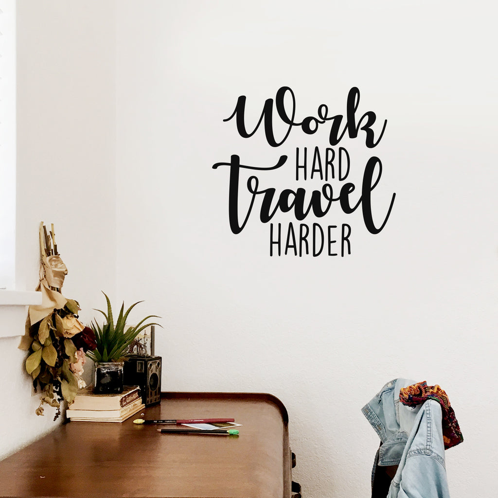This awesome inspirational decal quote "Work Hard Travel Harder"; is the perfect touch for your home or office. Use it for your home school; living room; office or anywhere you want to bring some extra decoration. It's a vinyl sticker that is easy to put on any smooth and dry surface. Our modern designs don't just brighten up the room; but brighten up the day. Using top of the line vinyl across all of our production allows us to be the leaders in quality and design.