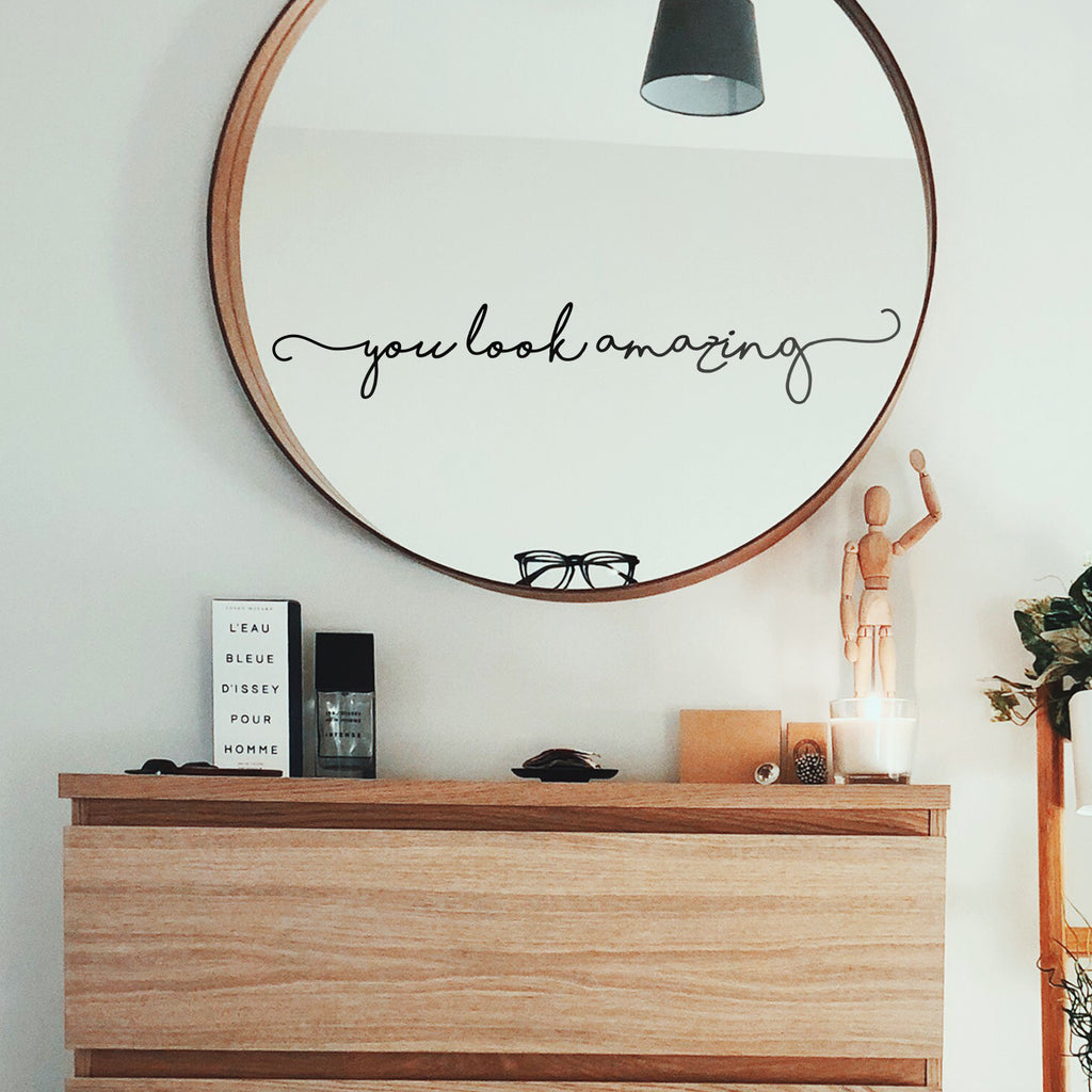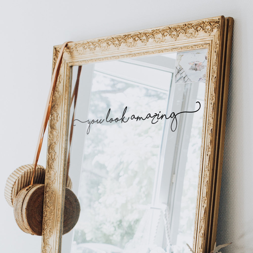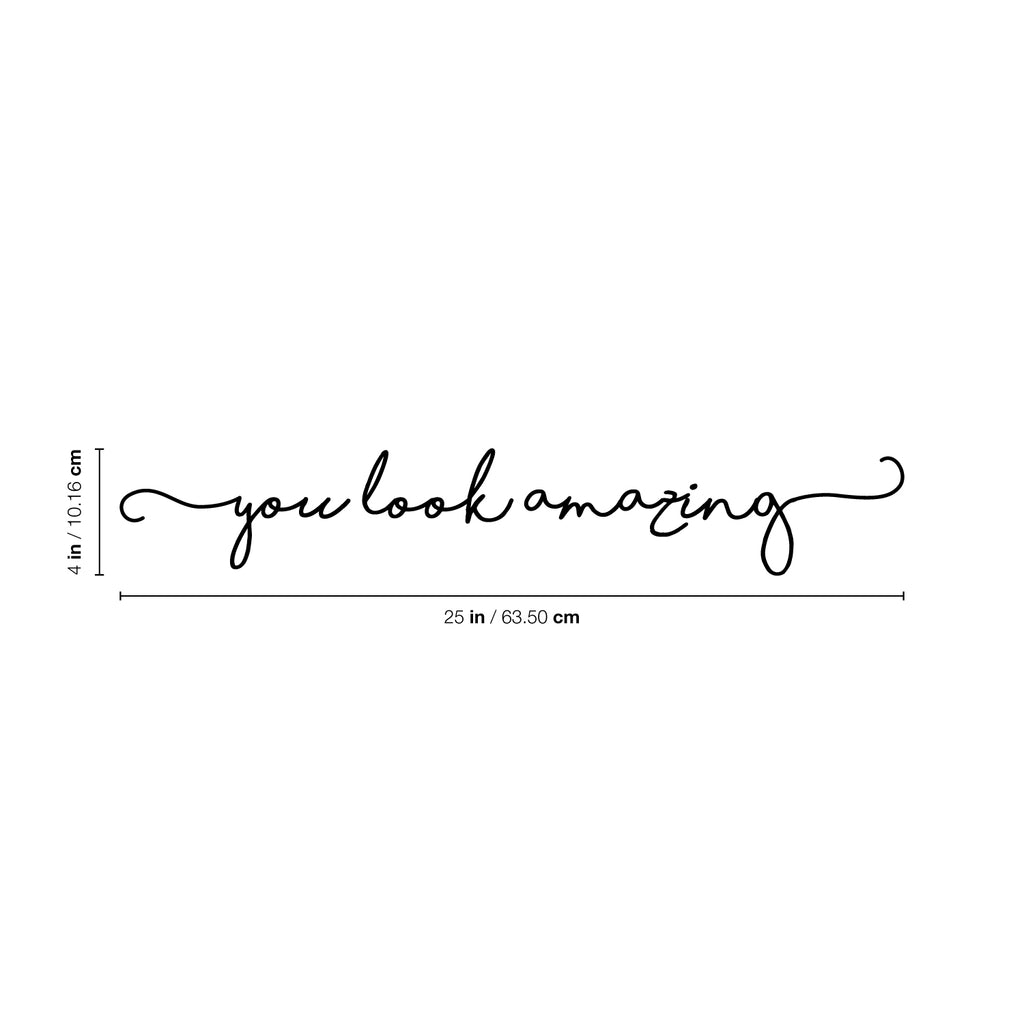 Vinyl Wall Art Decal - You Look Amazing - Cute Chic Cursive Home Apartment Bedroom Living Room Decor - Modern Trendy Femme Office Workplace Mirror Window Door Quote
