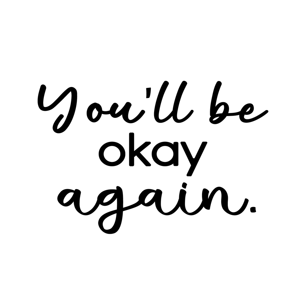 This awesome positive decal quote "You'll Be Okay Again"; is the perfect touch for your home or office. Use it for your living room; coffee shop or anywhere you want to bring some extra inspiring decoration. It's a vinyl sticker that is easy to put on any smooth and dry surface. Our modern designs don't just brighten up the room; but brighten up the day. Using top of the line vinyl across all of our production allows us to be the leaders in quality and design.