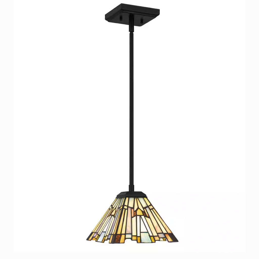 Waterville 1-Light Matte Black Mini Pendant with Tiffany Glass Shade - 1008550616