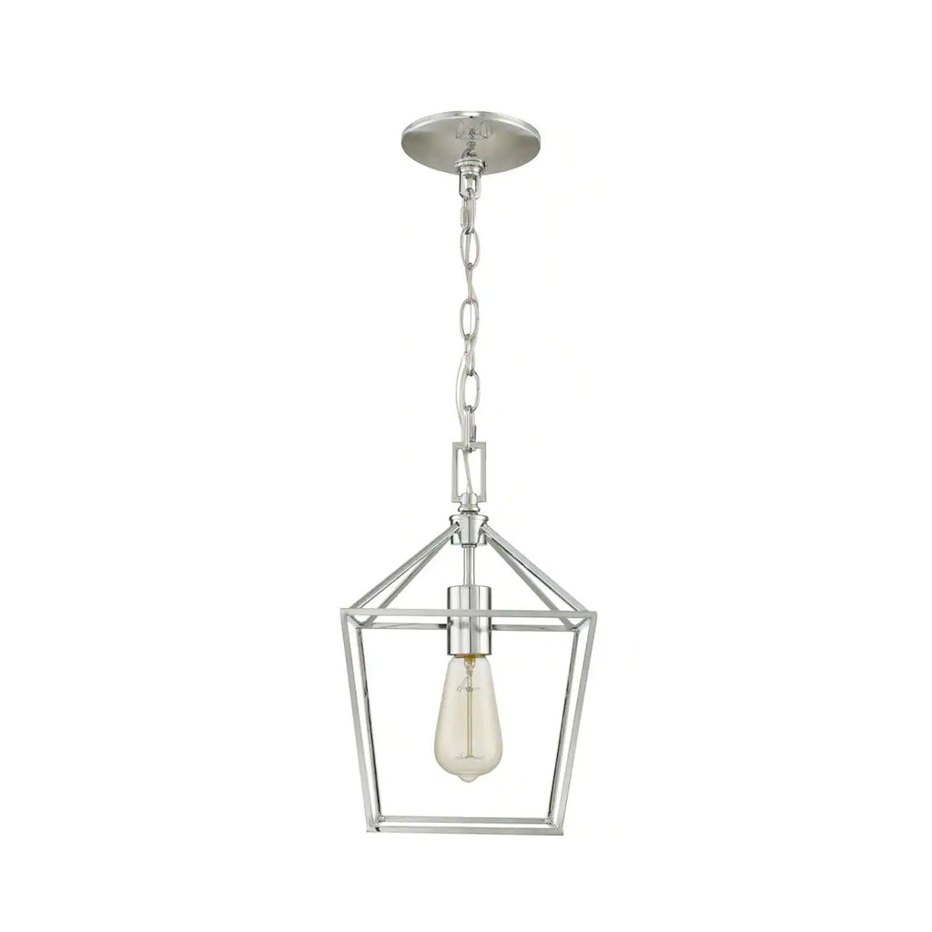 Weyburn 1-Light Chrome Farmhouse Mini Pendant Light Fixture with Caged Metal Shade - 1006324058